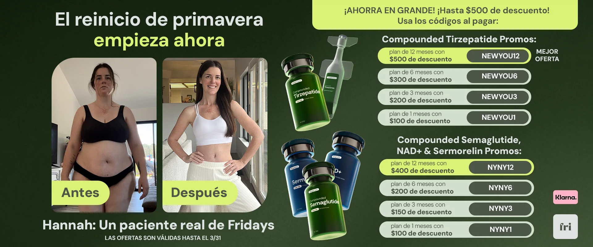 Fridays ofrece tratamientos con GLP-1 respaldados clínicamente que ayudan a regular el apetito, mejorar el metabolismo y apoyar una pérdida de peso sostenible. El proceso es simple—sin visitas presenciales, sin complicaciones—solo un tratamiento eficaz entregado directamente a ti.