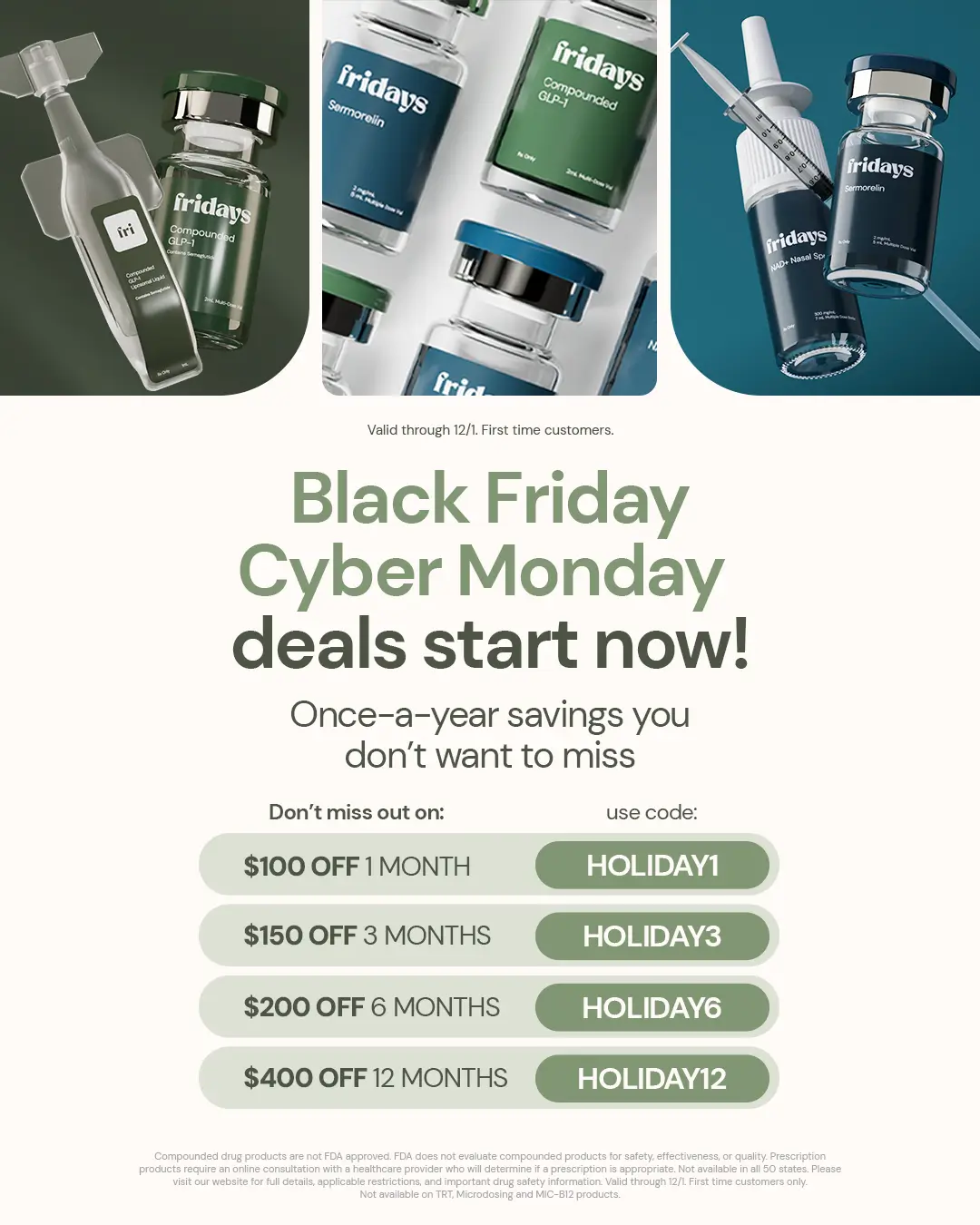 Fridays offers clinically backed GLP-1 treatments that help regulate appetite, improve metabolism, and support sustainable weight loss. The process is simple—no in-person visits, no hassle—just effective treatment delivered directly to you.